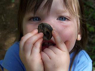 Here is a picture of Chloe on the same hike. She found a walnut shell and showing me that it looked like a pigs nose...